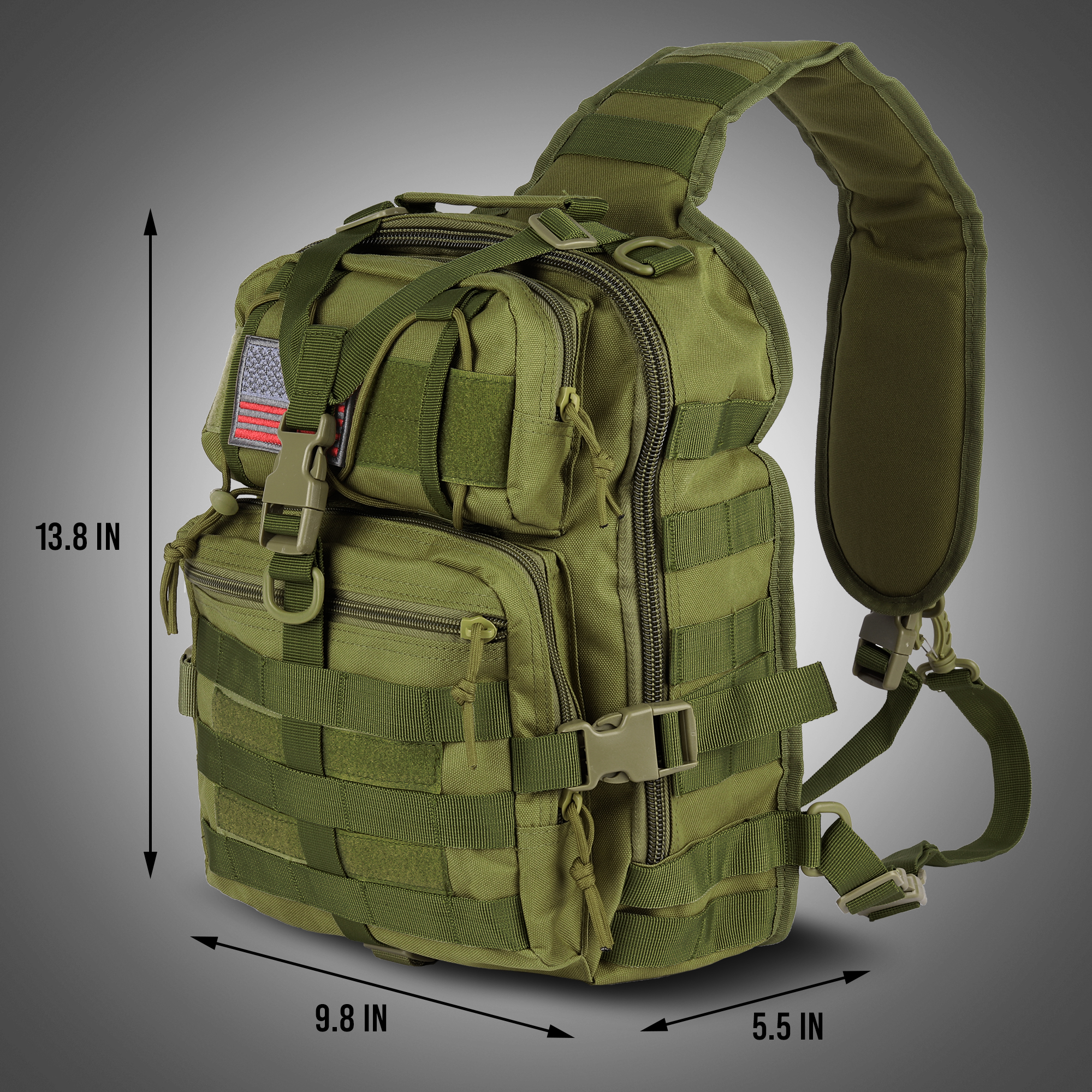 • MULTIPURPOSE: Perfect for an outdoor EDC sling pack, tactical messenger chest bag, EMT hand bag, go bag, bug out bag and is a great tactical assault pack. This over the shoulder backpack is very useful for short trips and travel and designed to meet your on-the-go needs.