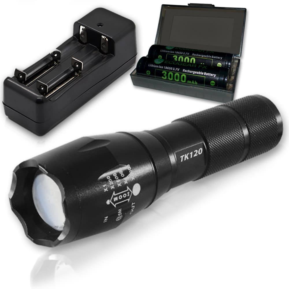 TK120 Professional LED Flashlight Kit with Batteries & Charger